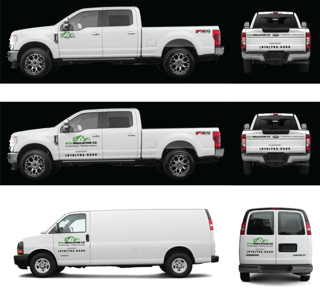 Car Protection Pro recently completed a custom-designed fleet graphic for Eco Insulation Co, giving their Ford F250 and Chevrolet Express a bold and professional edge. First, we designed the Logo. Then, using top-tier 3M High-Performance Wrap Vinyl, we printed the design in rich, high-resolution color with our wide-format Epson GS 6000 printer. After laminating for durability and sheen, we contour-cut the wrap with precision on our Graphtec plotter, which delivered a clean, high-impact finish that turns heads wherever it goes.